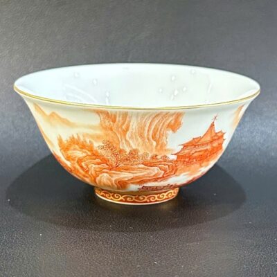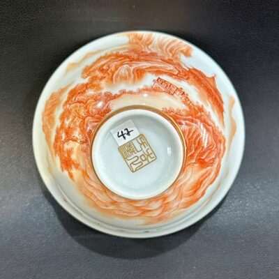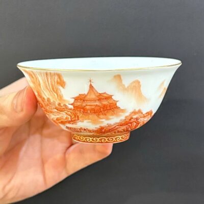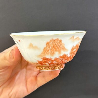 Chén sứ cảnh đức cao cấp men ngũ thái phàn hồng thái vẽ tay sơn thủy 100ml CS47