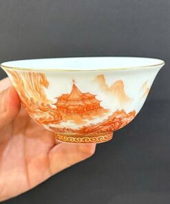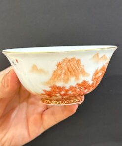 Chén sứ cảnh đức cao cấp men ngũ thái phàn hồng thái vẽ tay sơn thủy 100ml CS47