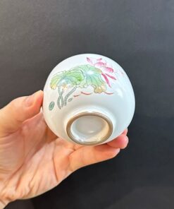 Chén sứ cảnh đức cao cấp vẽ tay hoa sen thái hội nung củi 100ml CS45