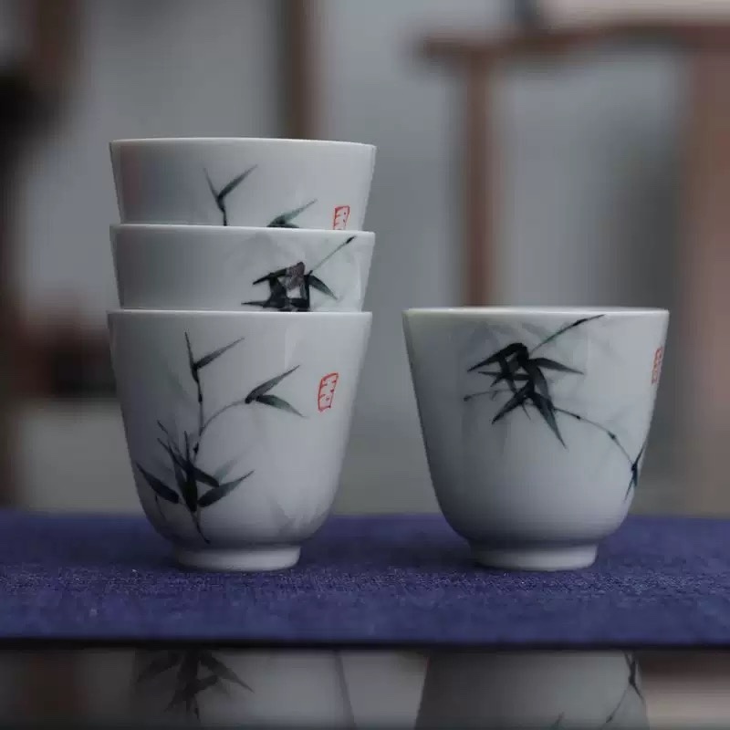 Đặt mua Chén Sứ Cảnh Đức Dáng Cao Vẽ Trúc Xanh 50ml CS112