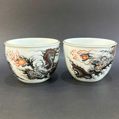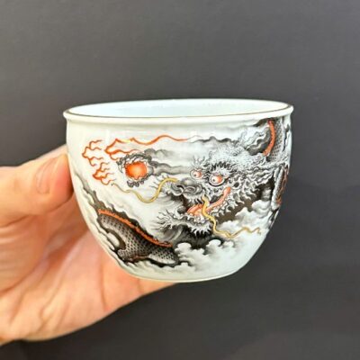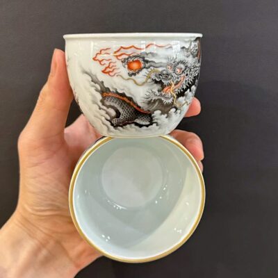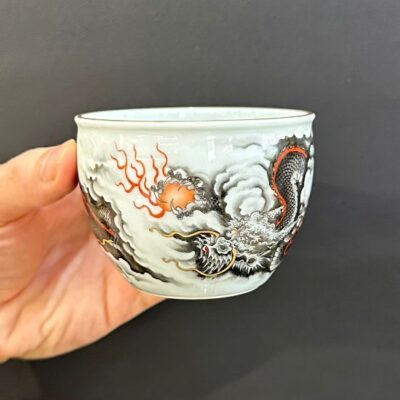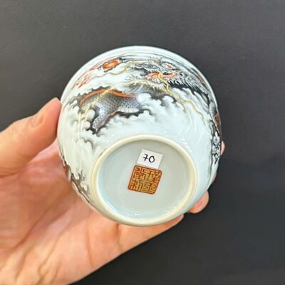 Chén sứ cảnh đức gốm phấn thái vẽ tay cao cấp rồng hắc long đẹp 120ml CS70