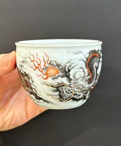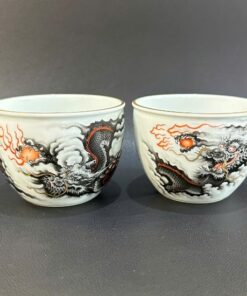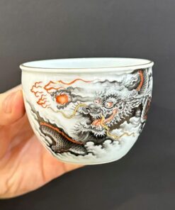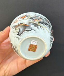 Chén sứ cảnh đức gốm phấn thái vẽ tay cao cấp rồng hắc long đẹp 120ml CS70