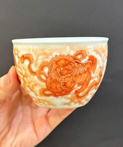 Chén sứ cảnh đức men ngũ thái vẽ tay kỳ lân cao cấp làm ly trà chủ 125ml CS92