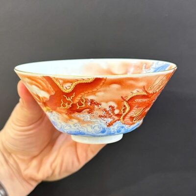 Chén sứ cảnh đức vẽ tay rồng men phấn thái cao cấp dùng làm ly trà chủ 160ml CS73