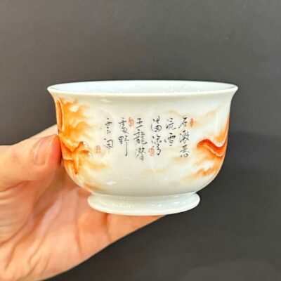Chén sứ phấn thái cảnh đức cao cấp vẽ tay rồng đẹp làm ly trà chủ 130ml CS76