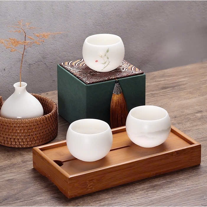 Đặt mua Chén Sứ Trắng Ngọc Đáy Bẹt 3 Hoạ Tiết 100ml CS03