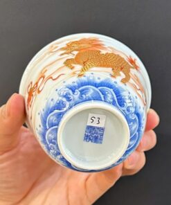Đặt mua Chén sứ vẽ tay cao cấp phấn thái cảnh đức hình kỳ lân làm ly trà chủ đẹp 130ml CS53