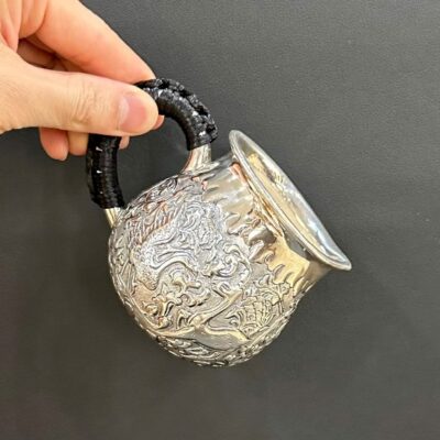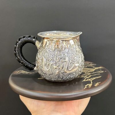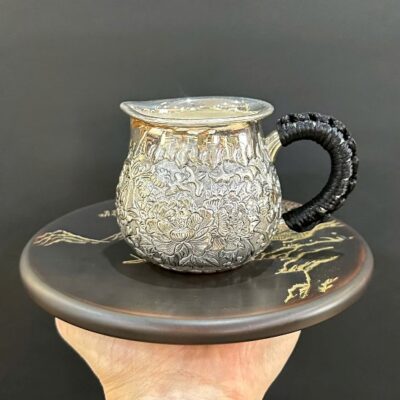 Đặt mua Chén tống bạc nguyên chất 999 gò tay thủ công hoa mẫu đơn đẹp CT86