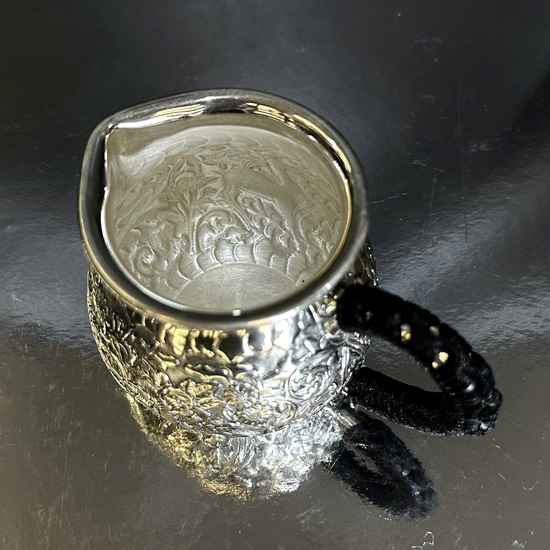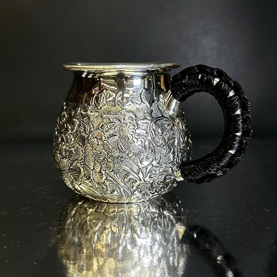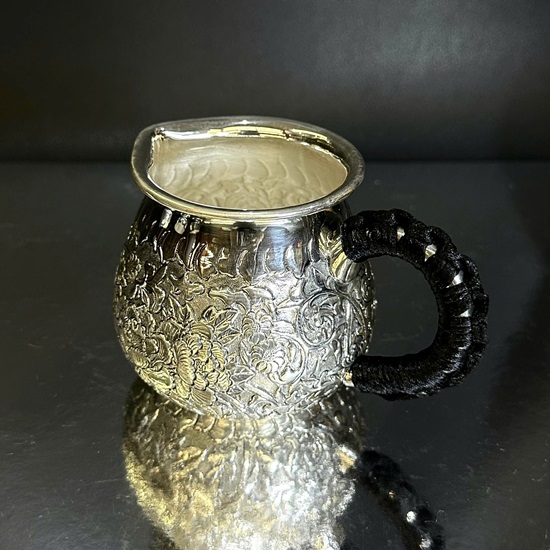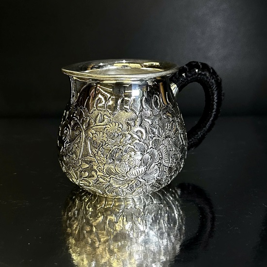 Đặt mua Chén tống bạc nguyên chất 999 gò tay thủ công hoa mẫu đơn đẹp CT86