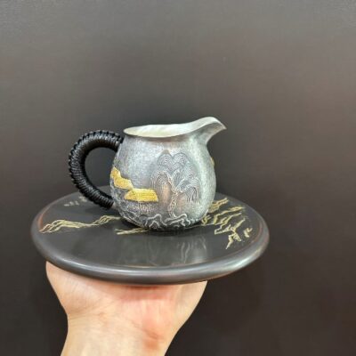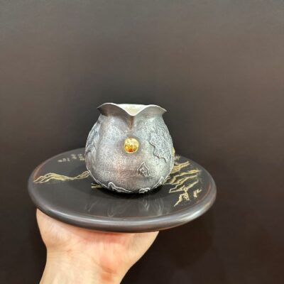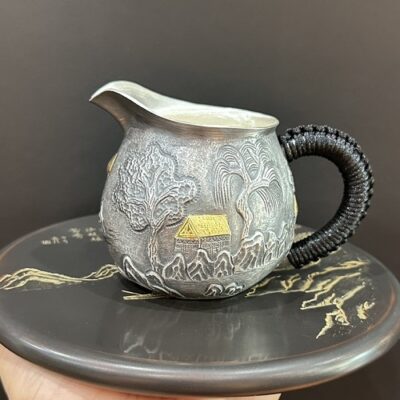 Chén tống bạc nguyên chất 999 làm chuyên rót trà đẹp gò tay thủ công tích an cư lạc nghiệp
