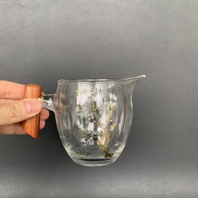 Chén tống thủy tinh làm chuyên trà quai gỗ đẹp 220 - 400ml CT05