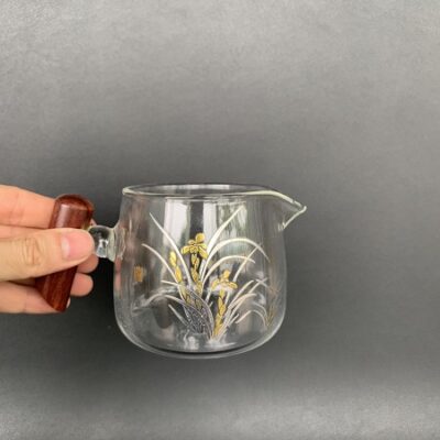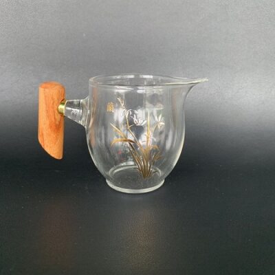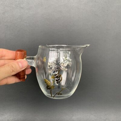Chén tống thủy tinh làm chuyên trà quai gỗ đẹp 220 – 400ml CT05