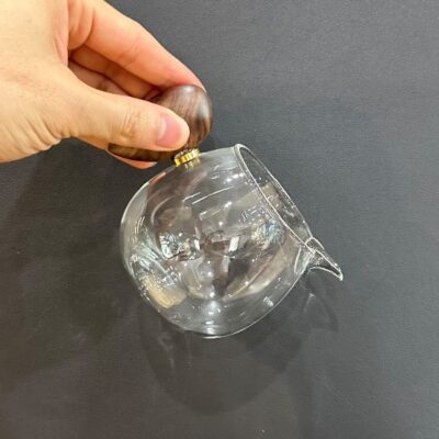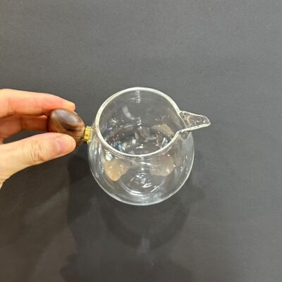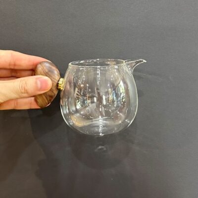 Đặt mua Chén tống thủy tinh quai gỗ làm chuyên rót trà đẹp 220ml CT27