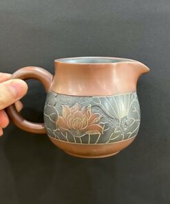 Đặt mua Chén tống tử sa nê hưng hỏa biến khắc sen thủ công cỡ to đẹp 320ml CT72
