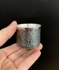 Chén trà bạc nguyên chất 999 gò tay thủ công bát mã đẹp 50ml CB03