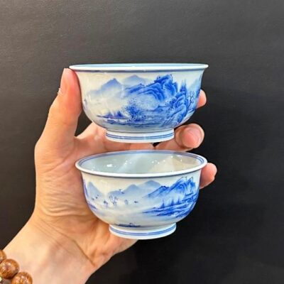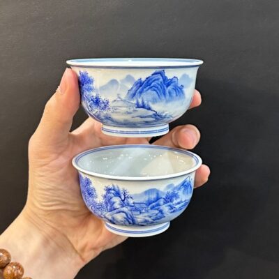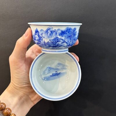 Đặt mua Chén trà chủ cao cấp sứ cảnh đức men lam vẽ tay sơn thủy đẹp 130ml CS80