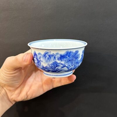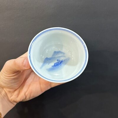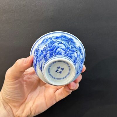 Chén trà chủ cao cấp sứ cảnh đức men lam vẽ tay sơn thủy đẹp 130ml CS80
