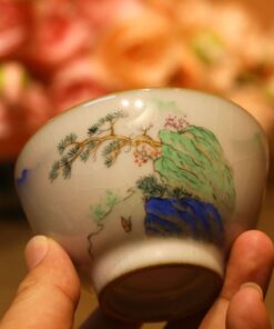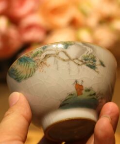 Đặt mua Chén trà sứ cảnh đức men rạn hoạ leo núi mùa xuân 120ml CS79