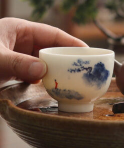 Chén trà sứ cảnh đức vẽ tay thưởng hoa trên núi thủ công 70ml CS09