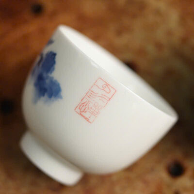 Đặt mua Chén trà sứ cảnh đức vẽ tay thưởng hoa trên núi thủ công 70ml CS09