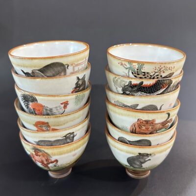 Chén sứ cảnh đức gốm thái hội thủ công vẽ tay 12 con giáp 85ml CS24