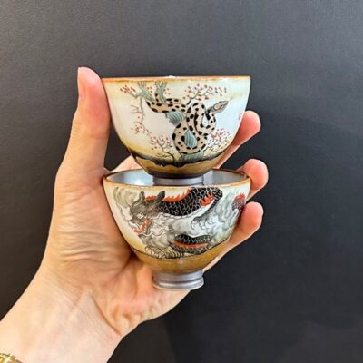 Ly trà sứ cảnh đức gốm thái hội nung củi vẽ tay trà chiều đẹp 110ml CS13