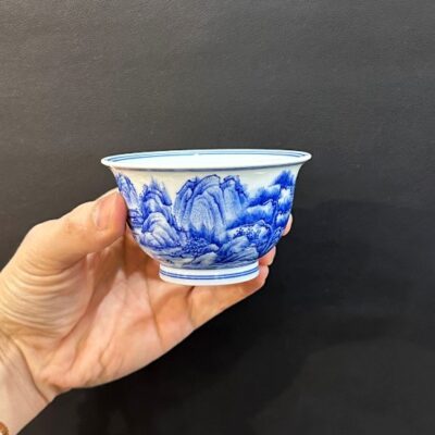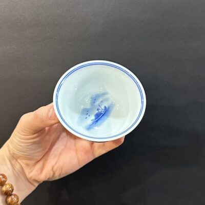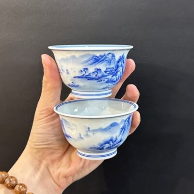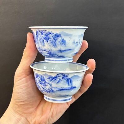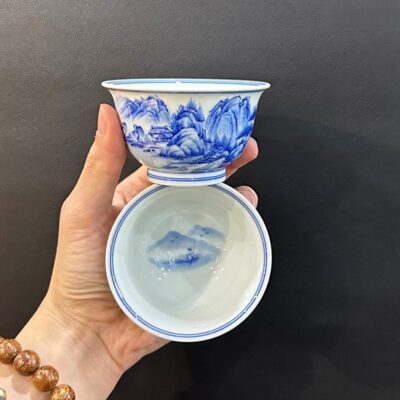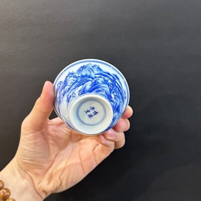 Chén trà sứ cảnh đức men lam cao cấp vẽ thiên lý giang sơn đồ 100ml CS82