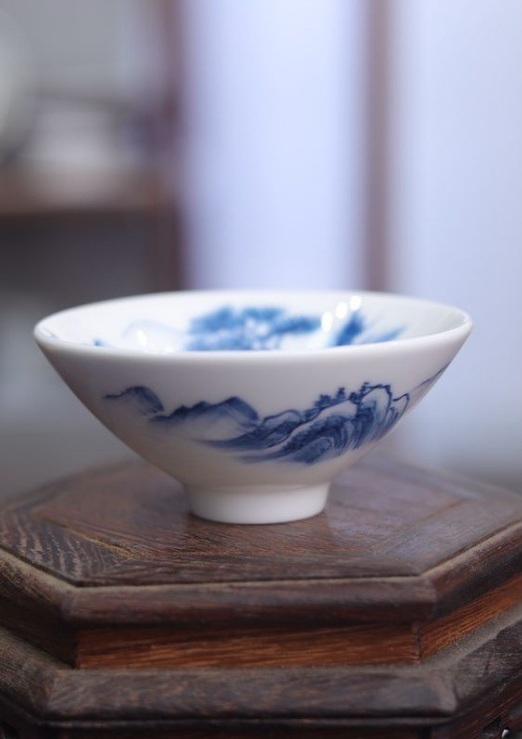 Chén sứ Cảnh Đức dáng nón họa Sơn Thủy CS16