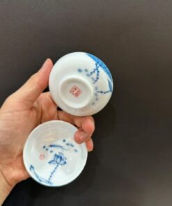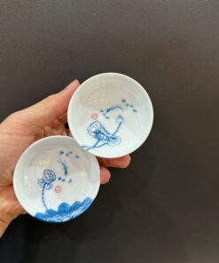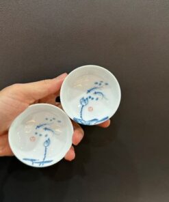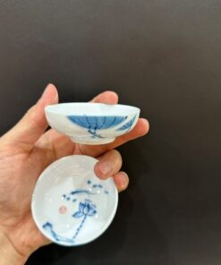 chén trà sứ cảnh đức vẽ tay sen cá thủ công dáng thấp đẹp 35ml 6 họa tiết khác nhau.
