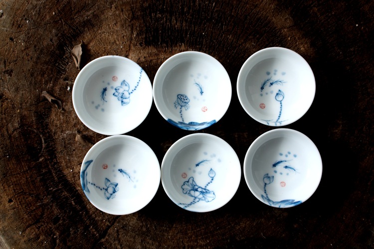 Chén sứ Cảnh Đức bộ 6c sen “Hoa nở hoa tàn” CS17