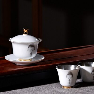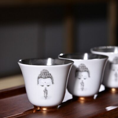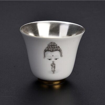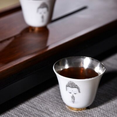 Chén trà tráng bạc cao cấp hướng phật đẹp 60ml CTM19