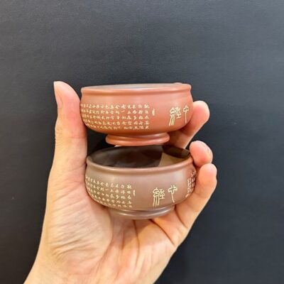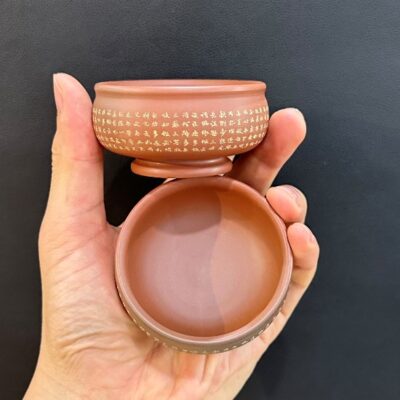 Chén trà tử sa nê hưng cao cấp hỏa biến 2 màu khắc bát nhã kinh 50ml CNH04