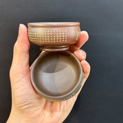 Đặt mua Chén trà tử sa nê hưng cao cấp hỏa biến 2 màu khắc bát nhã kinh 50ml CNH04