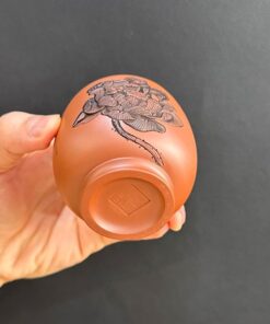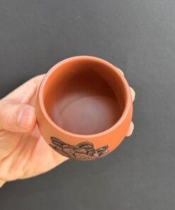 Đặt mua Chén tử sa nê hưng cao cấp thủ công khắc sen đỏ đẹp 120ml CNH30