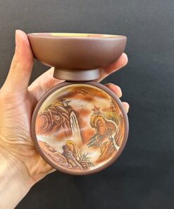 Chén tử sa cao cấp vẽ sơn thuỷ đẹp nguyên khoáng đất cũ 100ml CTS06
