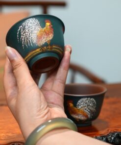 Đặt mua Chén tử sa đắp nổi gà nguyên khoáng đất cũ thủ công đối ẩm 100ml CTS29