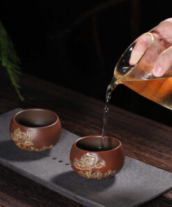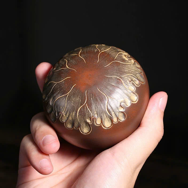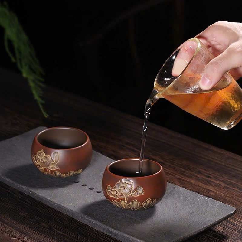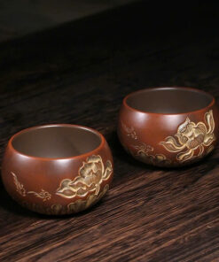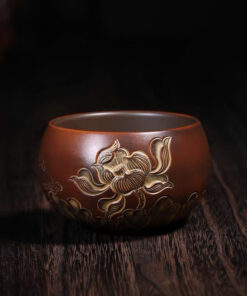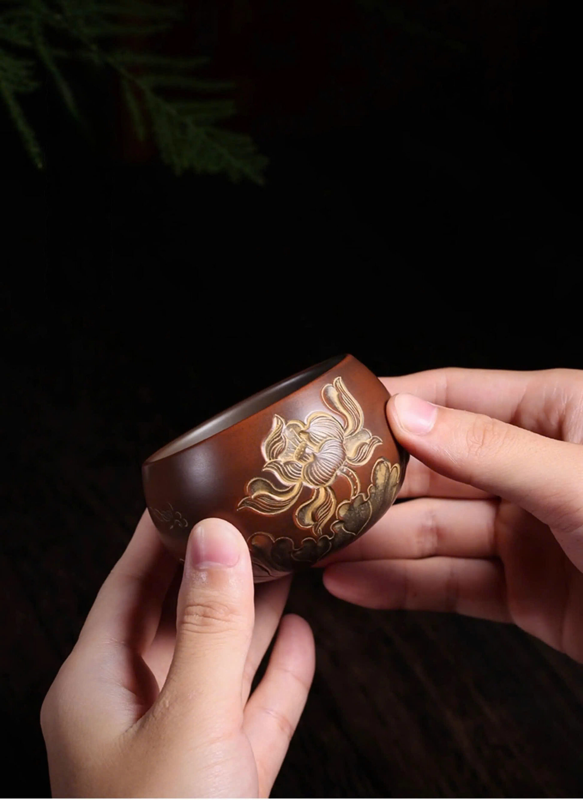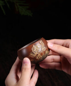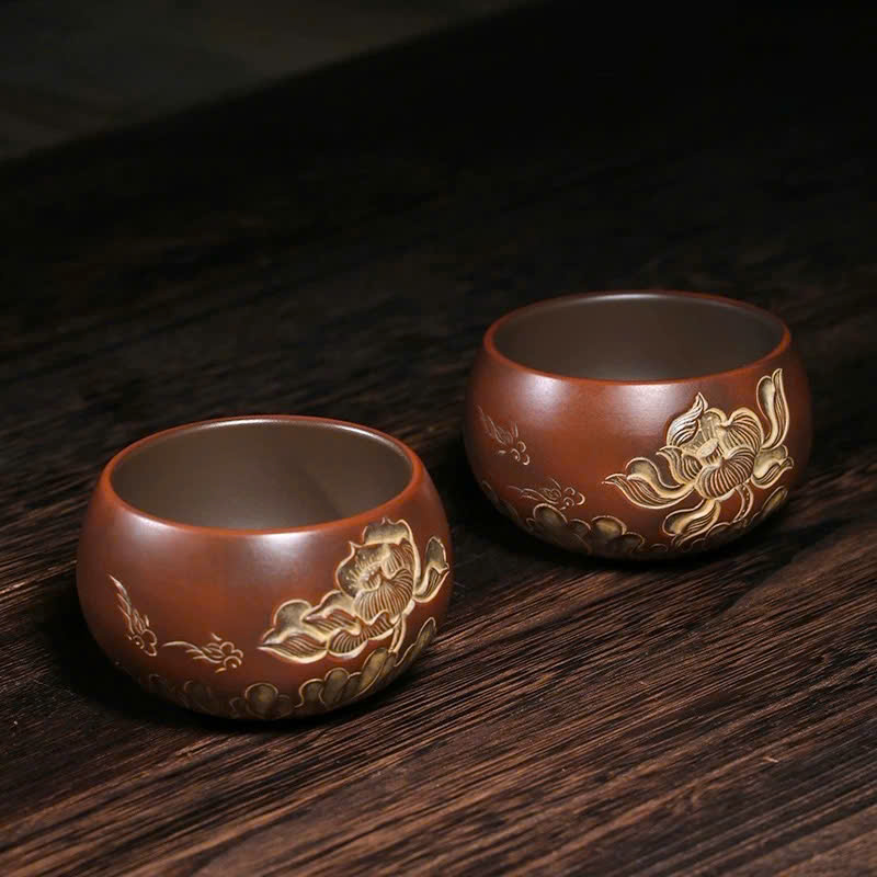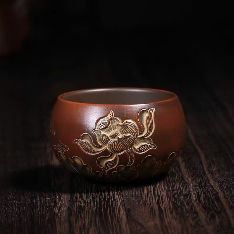 Chén tử sa hỏa biến khắc sen thủ công đẹp giữ nhiệt tốt làm ly uống trà đẹp đáy tròn.