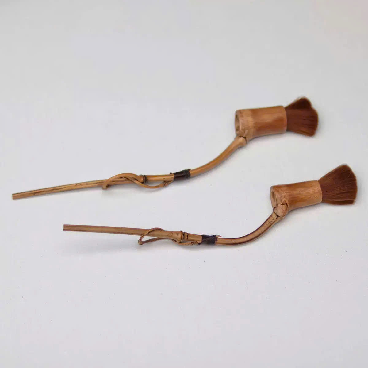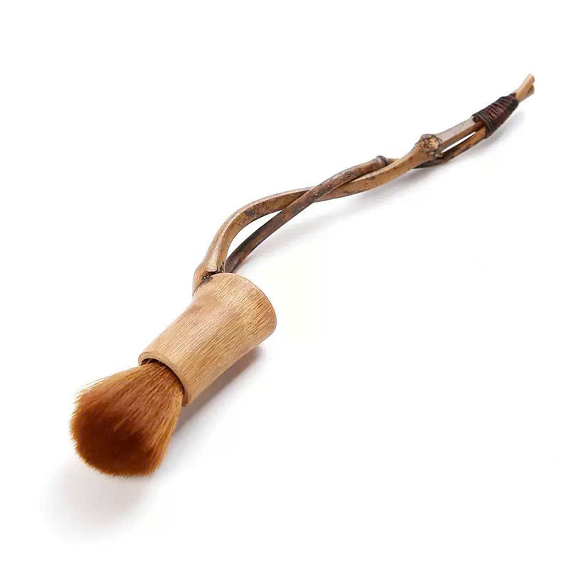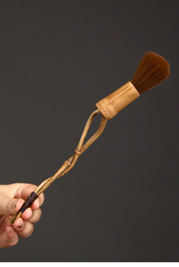 Chổi trà dưỡng ấm cán tre đẹp xoắn thủ công lông mượt 24cm.
