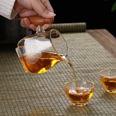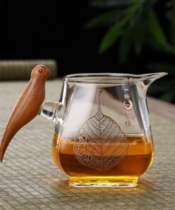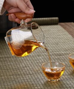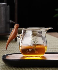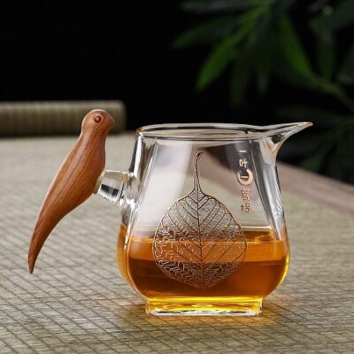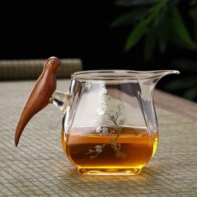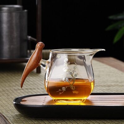 Đặt mua Chuyên trà thủy tinh quai gỗ cao cấp làm chén tống rót trà 350ml CT08