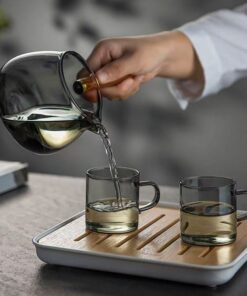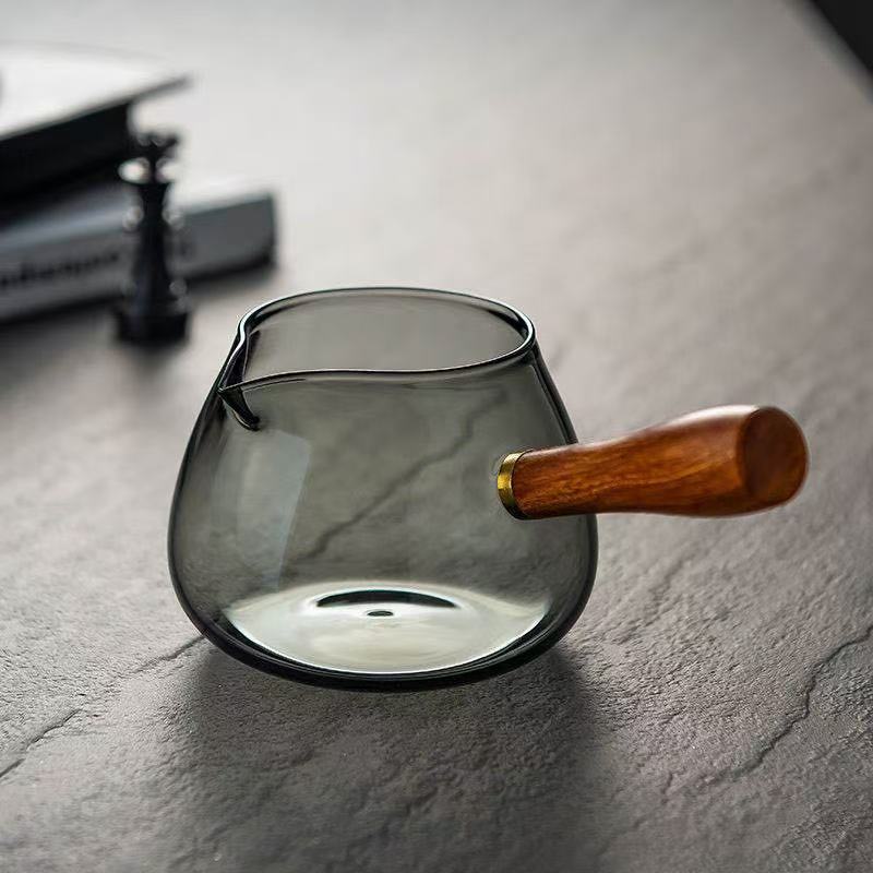 Đặt mua Chuyên trà thủy tinh quai ngang bằng gỗ làm chén tống đẹp 300ml CT15