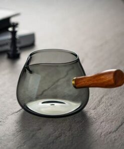 Chuyên trà thủy tinh quai ngang bằng gỗ làm chén tống đẹp 300ml CT15