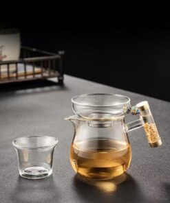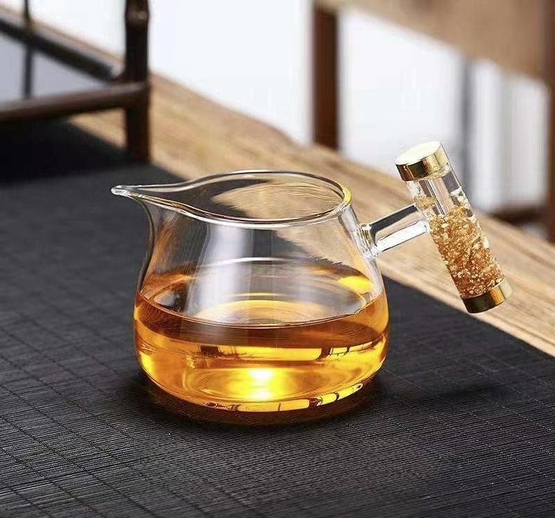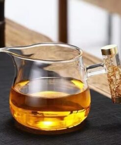 Đặt mua Chuyên trà thủy tinh quai vàng làm chén tống đẹp 300ml CT25