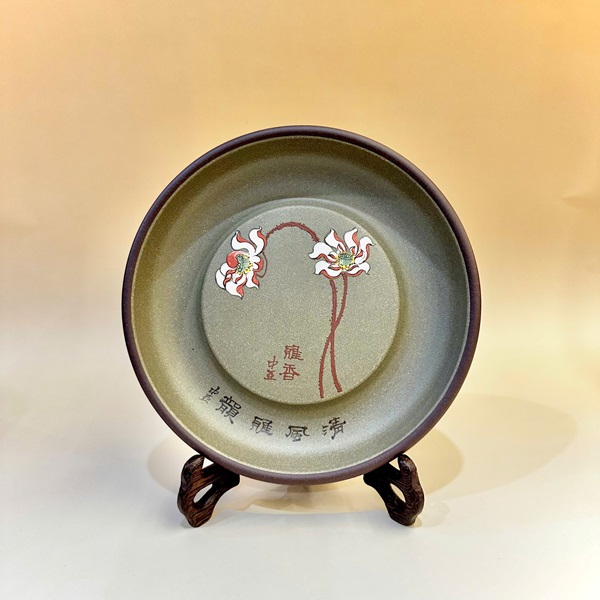 Đế ấm trà tử sa đất cũ nguyên khoáng thủ công hình hoa sen đẹp DC90