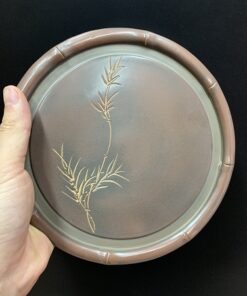 Đặt mua Đế ấm trà tử sa hỏa biến làm thuyền trà khắc trúc đẹp 19x1cm DC70