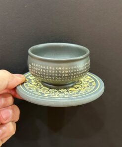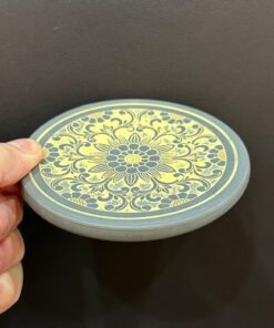 Đế kê chén trà dáng tròn gốm tử sa họa tiết hoa cúc đại đẹp LC56.