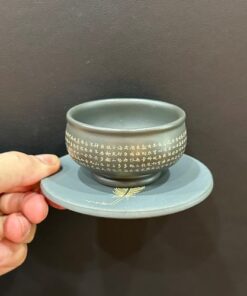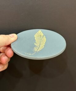Đế kê chén trà tử sa họa lông vũ thủ công dáng tròn xanh đẹp LC52.