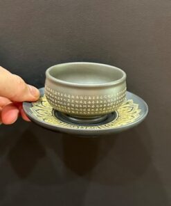 Đĩa lót chén trà dáng tròn họa tiết đài sen thủ công mỏng đẹp LC57.