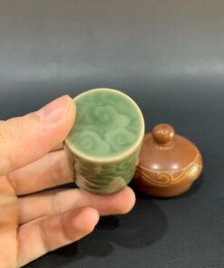 Gác nắp ấm sứ cảnh đức men ngọc đẹp dáng trụ tròn nhỏ 4.9cm DC79