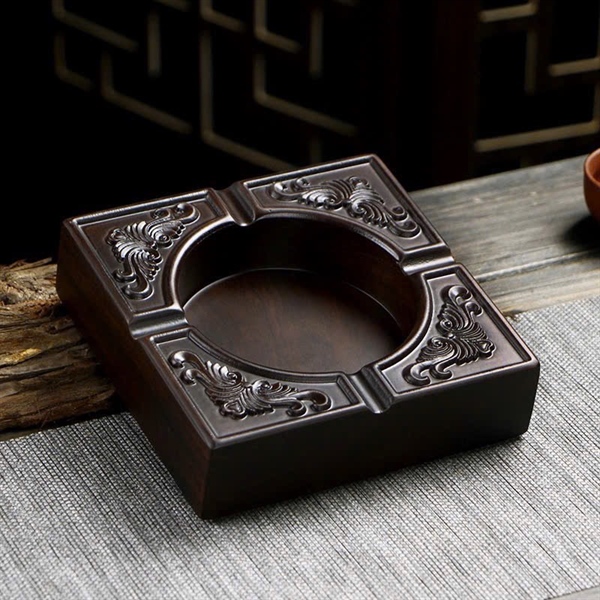Gạt tàn bằng gỗ gụ nguyên khối ngũ phúc lâm môn vuông 16x4.5cm GTG07.