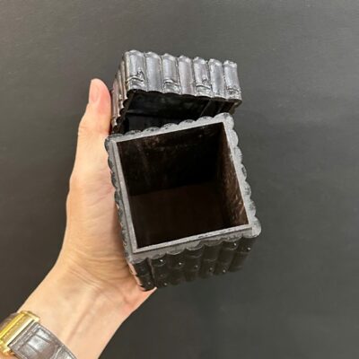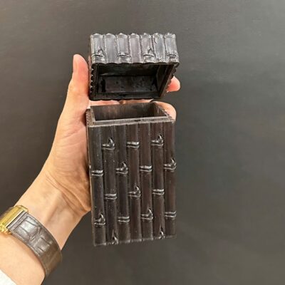 Hộp đựng trà bằng gỗ dáng vuông đốt trúc đẹp nắp kín cao 12.5cm HT17